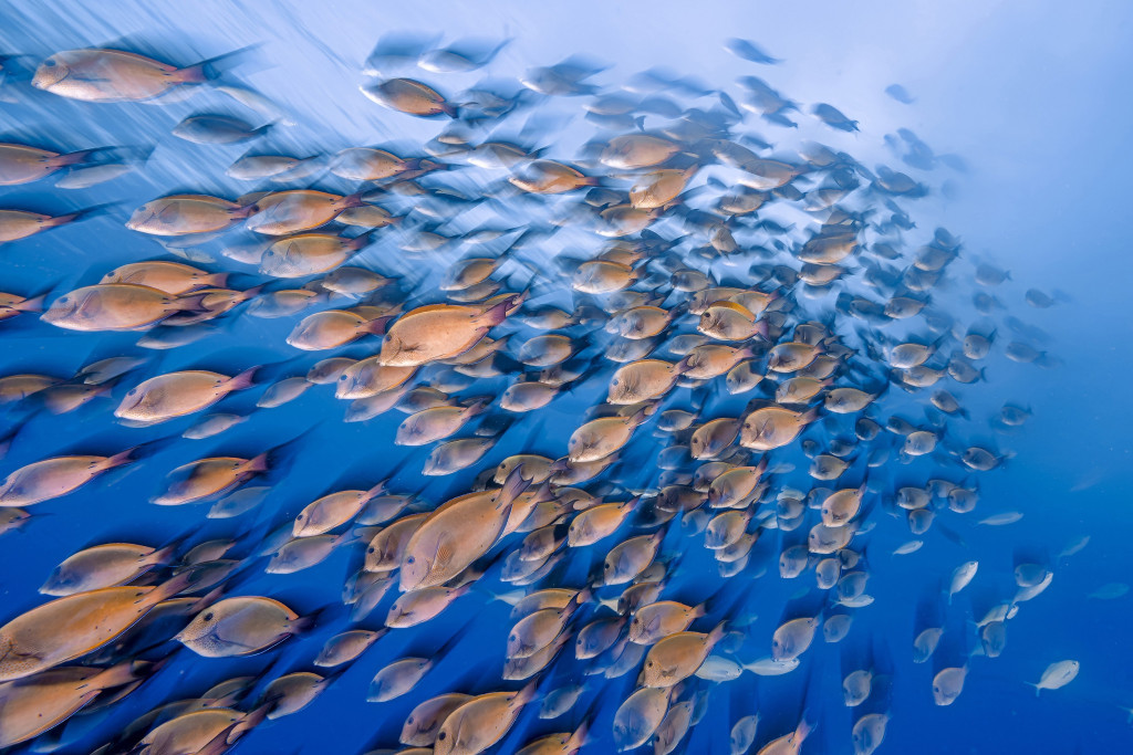 Underwater colorful snowstorm…